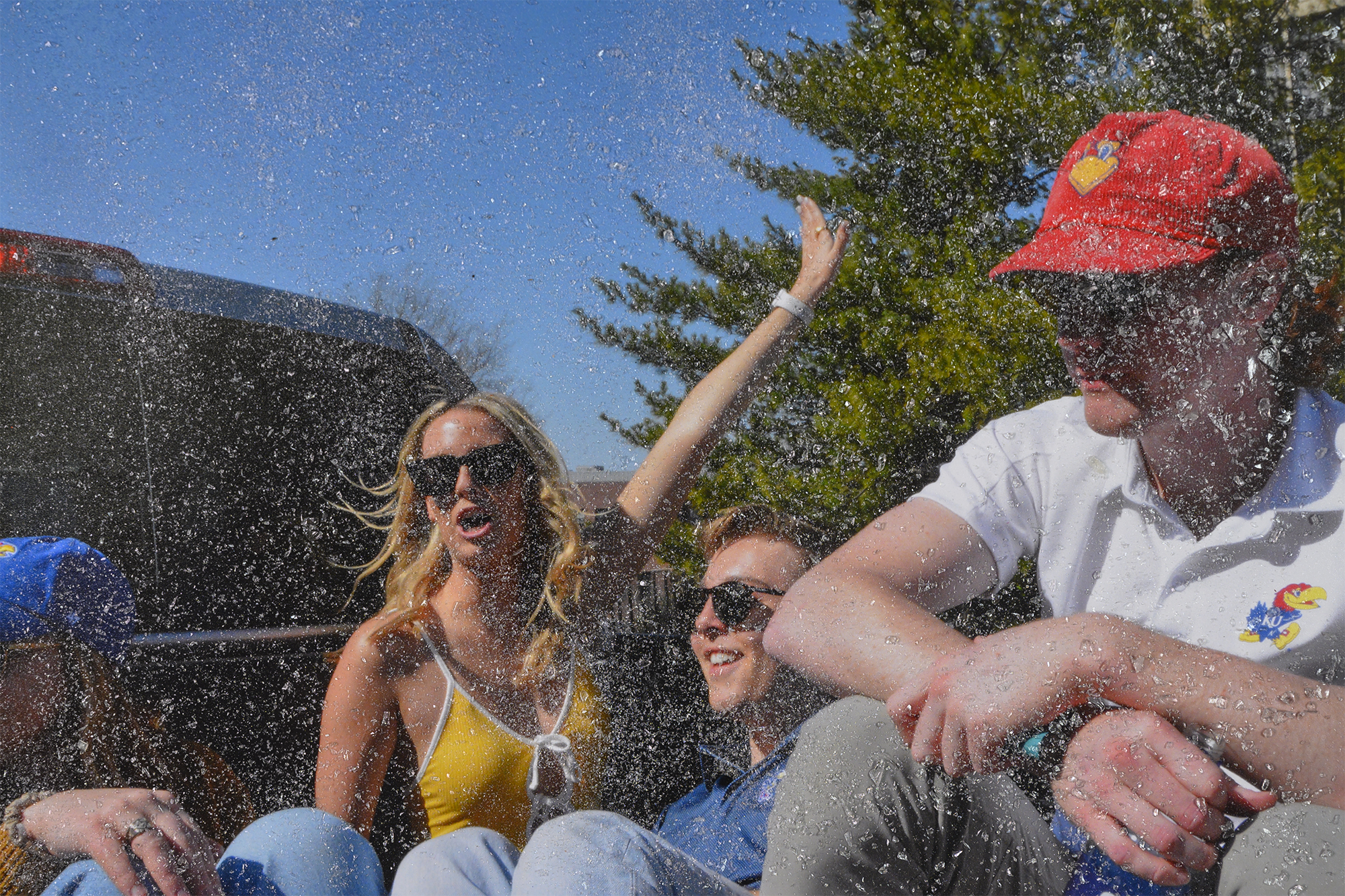 The photographs in this series are a collection of “vernacular” party pictures referencing the casual and familiar nature of some of the scenes. My images play on the “attractiveness” of alcohol utilizing broken bottle shards arranged on the photographs. From a distance the broken glass appears to be a glittering valuable, however upon closer inspection the sharp and dangerous reality is revealed. A secondary function of the glass is allowing anonymity to the subjects in the photographs. Students attend university to learn, evolve, and create new bonds. What habits will be impossible to shake and how will we find our place in relationships?
